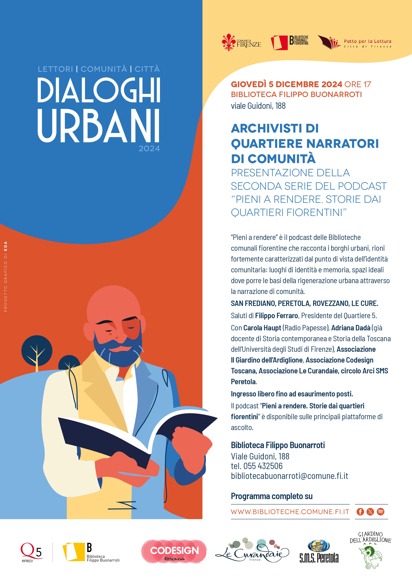 L'incontro fa parte della rassegna Dialoghi urbani, curata dalle Biblioteche comunali fiorentine, che ha come filo conduttore la riappropriazione dello spazio urbano attraverso la raccolta delle memorie e la narrazione di comunità.