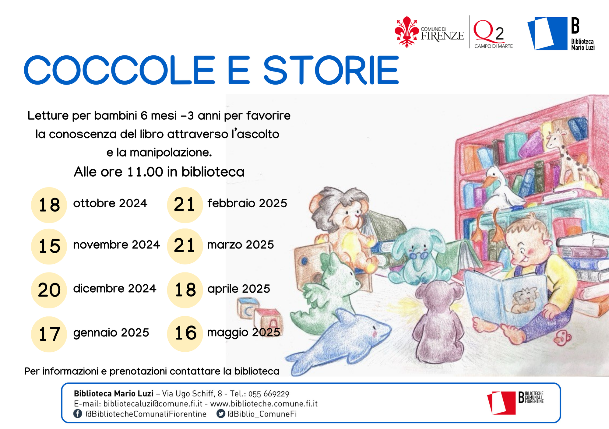 Da ottobre a maggio la Biblioteca Mario Luzi organizza ogni terzo venerdì del mese alle ore 11 degli incontri durante i quali si darà l’opportunità a genitori, nonni e babysitter insieme ai loro piccoli, di ascoltare le storie lette dalla bibliotecaria e di conoscere gli aspetti positivi della lettura, favorendo la relazione tra bambino e genitori e consolidando l’abitudine a leggere anche nelle età successive.