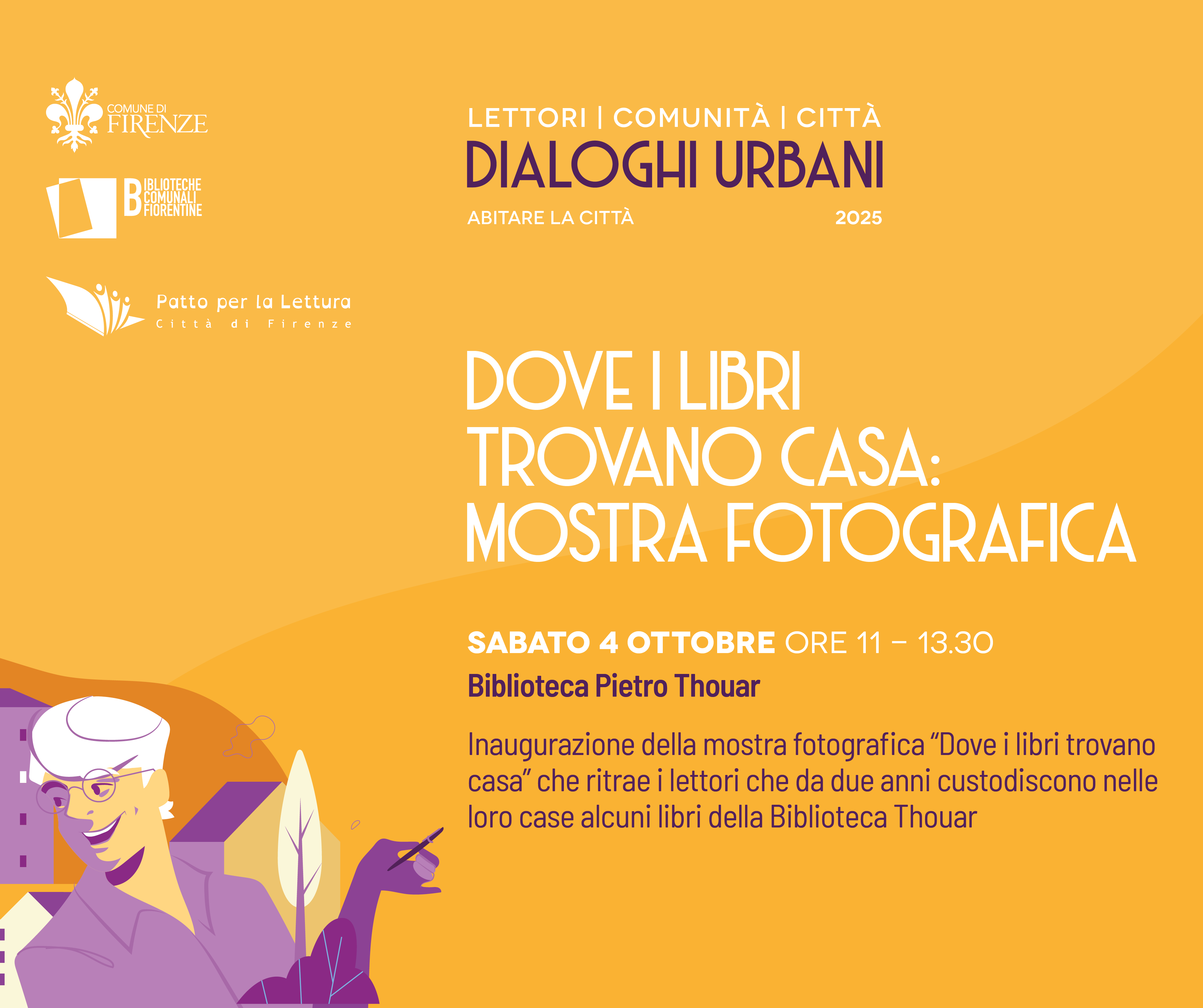 Nell'ambito della rassegna Dialoghi Urbani, dal 25 ottobre al 9 novembre alla Biblioteca Palagio di Parte Guelfa una mostra fotografica ritrae i lettori che custodiscono in casa alcuni libri della biblioteca Pietro Thouar