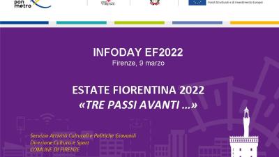 L’Amministrazione comunale con deliberazione di Giunta n. 23 dell’8/2/2022, ha determinato le linee di indirizzo e i criteri per la realizzazione della rassegna Estate Fiorentina 2022, che si svolgerà dal 1 giugno al 30 settembre 2022.