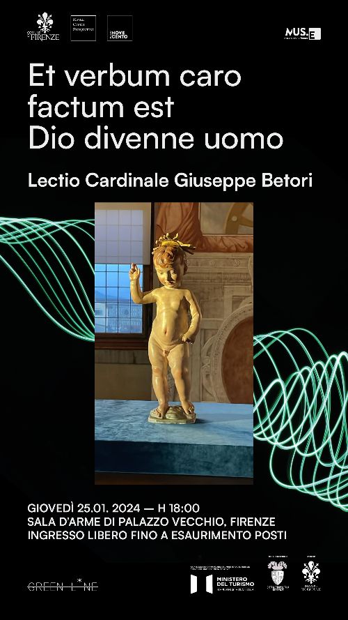 Il Museo Novecento invita alla Lectio del Cardinale Giuseppe Betori "Et Verbum caro factum est. Dio divenne uomo" giovedì 25 Gennaio ore 18:00 nella Sala d'Arme di Palazzo Vecchio.