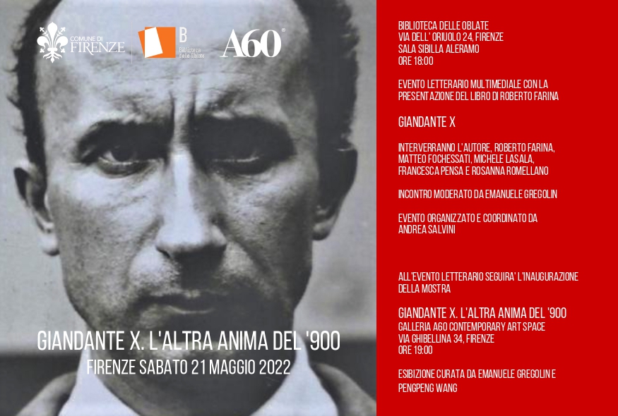 L'evento di presentazione del libro precede l'inaugurazione della mostra dedicata all'artista dal titolo Giandante X. L’altra anima del ‘900. La mostra, realizzata e curata da Emanuele Gregolin e Penpeng Wang, verrà inaugurata alle ore 19 presso A60 Contemporary Art Space (Via Ghibellina, 34 - Firenze)