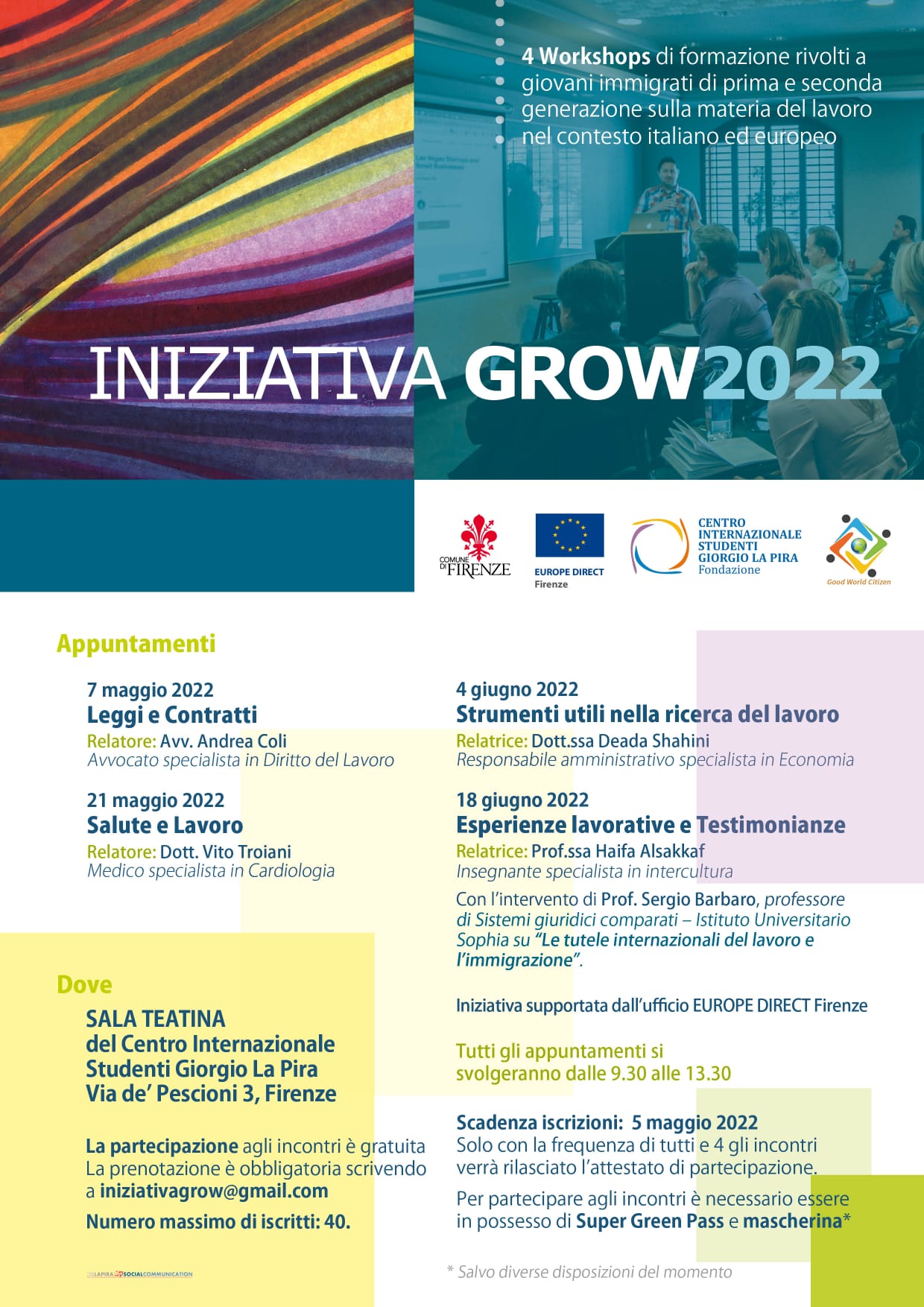 A partire dal 21 maggio quattro workshop gratuiti sul lavoro per giovani migranti al Centro Giorgio La Pira, in collaborazione con Europe Direct Firenze