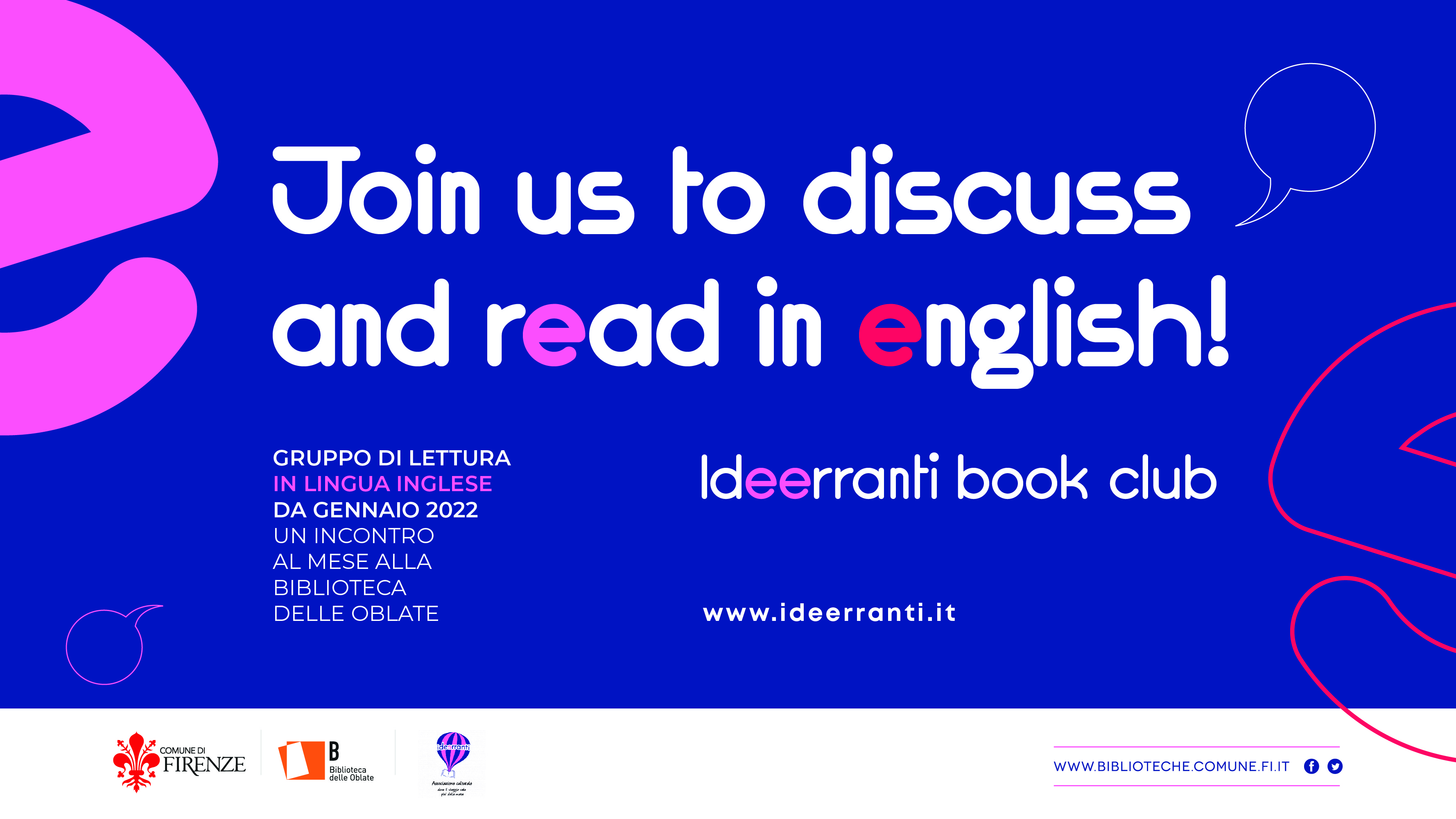 Grazie all'Associazione Ideerranti nascerà nel mese di gennaio alla Biblioteca delle Oblate un gruppo di lettura in lingua inglese.