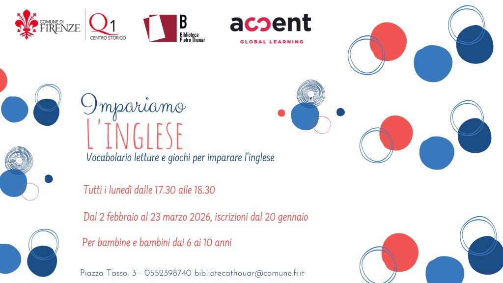 Dal 2 febbraio, ogni lunedì dalle 17.30 alle 18.30, torna alla Biblioteca Thouar il corso d’inglese con studenti madrelingua per bambini dai 6 ai 10 anni