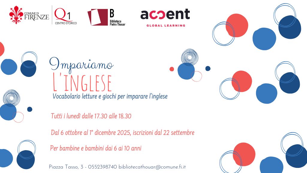Anche quest’anno alla biblioteca Thouar torna "Impariamo l’inglese", il corso dedicato ai bambini che vogliono avvicinarsi alla lingua inglese in modo giocoso, stimolante e coinvolgente.