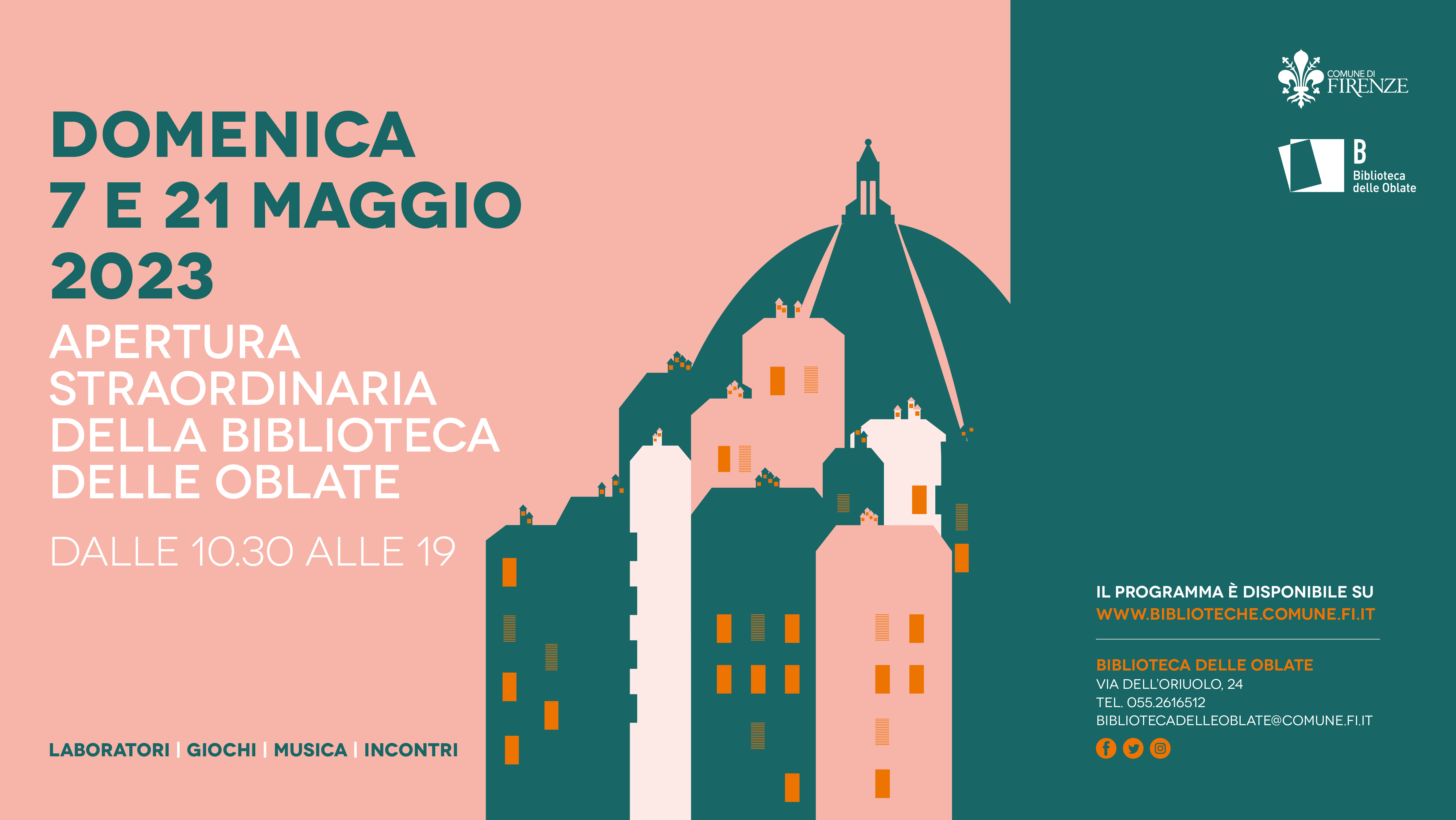 Tutte le iniziative sono gratuite, su prenotazione fino ad esaurimento dei posti disponibili. Per informazioni e prenotazioni contattare la Biblioteca al numero 055 261 6512 o all'indirizzo bibliotecadelleoblate@comune.fi.it