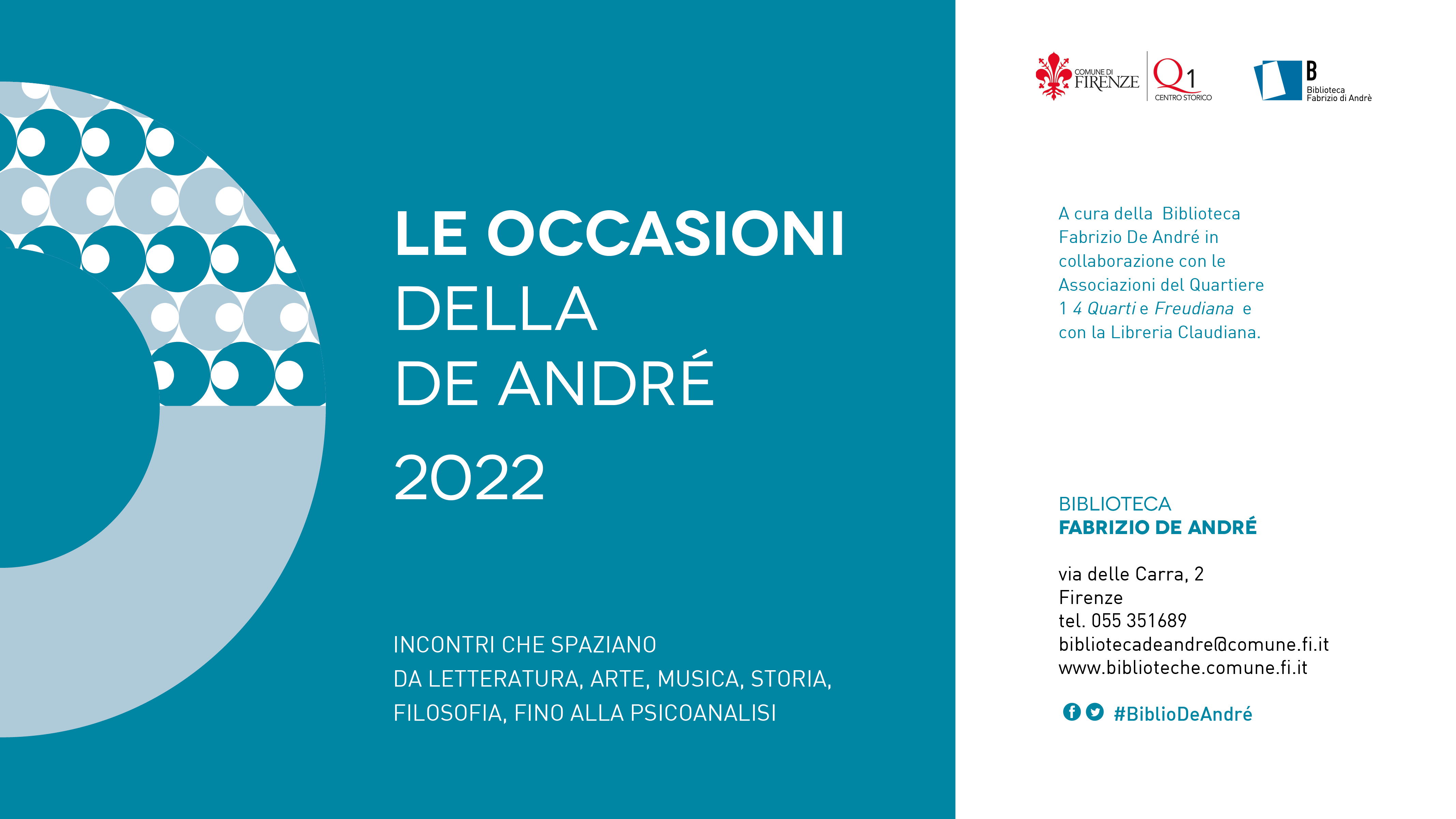 Continua la programmazione de "Le occasioni della De André", ciclo realizzato e curato dalla Biblioteca Fabrizio De André, in collaborazione con le Associazioni del Q1 4Quarti, Freudiana e con la libreria Claudiana.