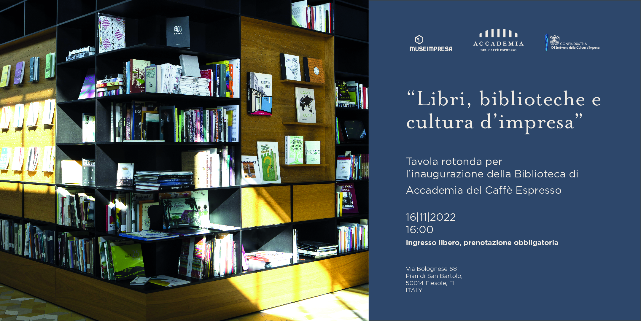 In occasione dell'inaugurazione della biblioteca dell'Accademia, mercoledì 16 novembre alle ore 16 si terrà la tavola rotonda "Libri, biblioteche e cultura d'impresa"  che avrà come tema il ruolo delle biblioteche nella promozione della cultura d’impresa, e della cultura in generale.