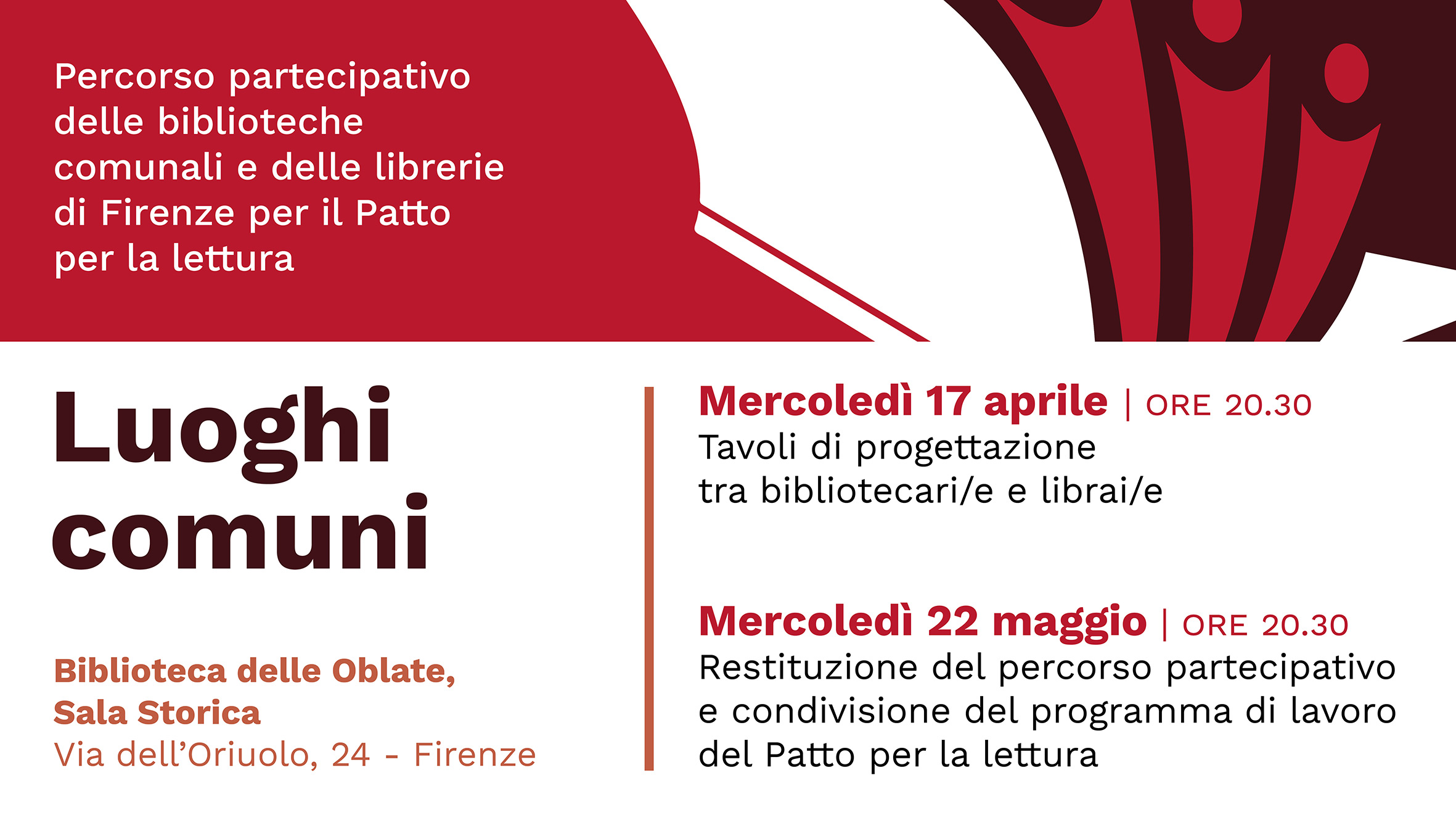 Per questo motivo nei mesi di aprile e maggio le Biblioteche comunali fiorentine organizzano due incontri rivolti alle librerie della città, per raccogliere aspettative e temi di lavoro per il Patto per la lettura.