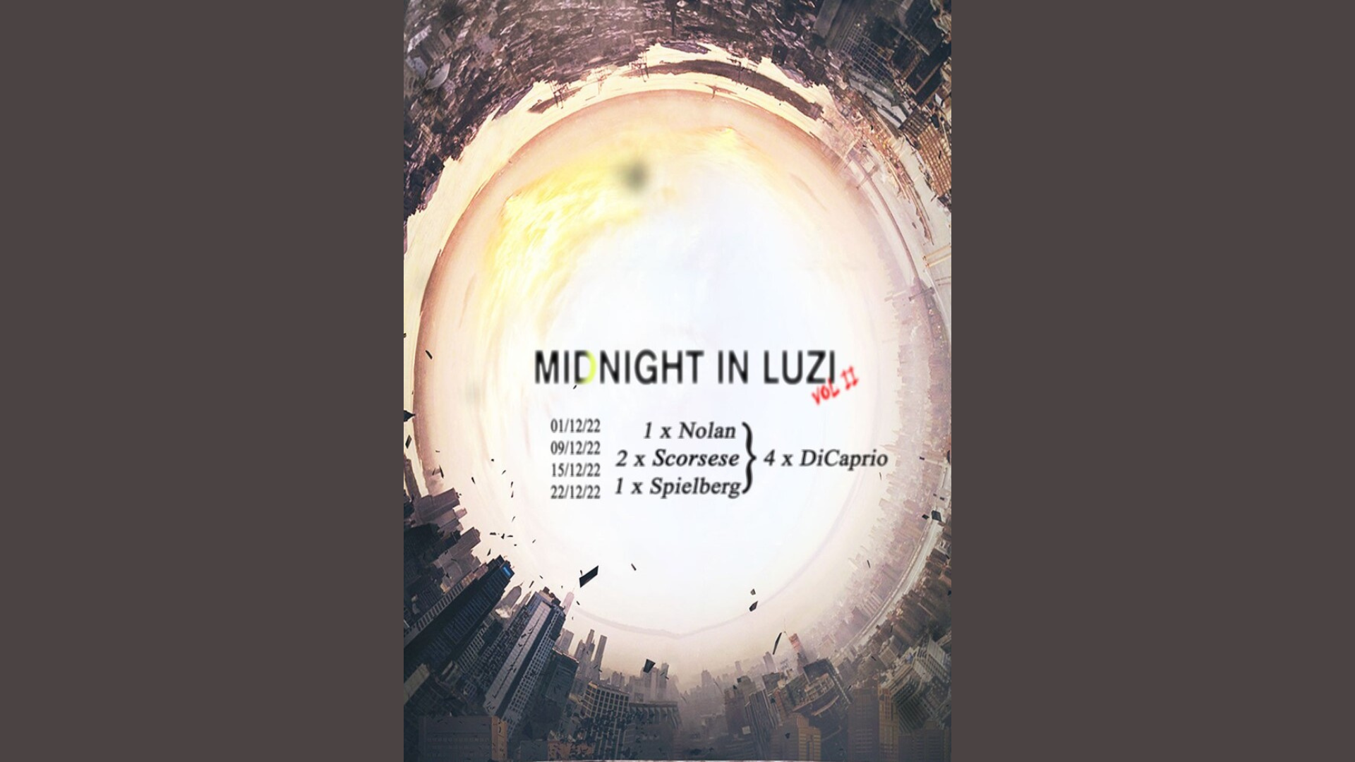 Nel mese di dicembre l'Associazione Taralluzzi - Amici della Luzi propone alla Biblioteca Mario Luzi la seconda edizione di Midnight in Luzi: quattro film, di tre grandi registi, che hanno per protagonista Leonardo DiCaprio.