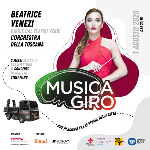 Presso il Teatro Verdi, alle ore 20:15, il M° Beatrice Venezi, curerà l’esecuzione del suo primo album “MY JOURNEY – Puccini’s Symphonic Works”, pubblicato da Warner Music Italia e dirigerà l’Orchestra della Toscana, la stessa con cui ha realizzato il suo album. In un concerto a porte chiuse, le note che dal Teatro Verdi prenderanno “vita” saranno trasmesse, in streaming audio, su due CRICKET PE30 primo mezzo completamente elettrico con a bordo un allestimento professionale per la diffusione audio in occasione di eventi di ogni genere, che effettueranno due percorsi distinti tra alcune strade di Firenze, andando così a portare la musica sotto casa dei cittadini.