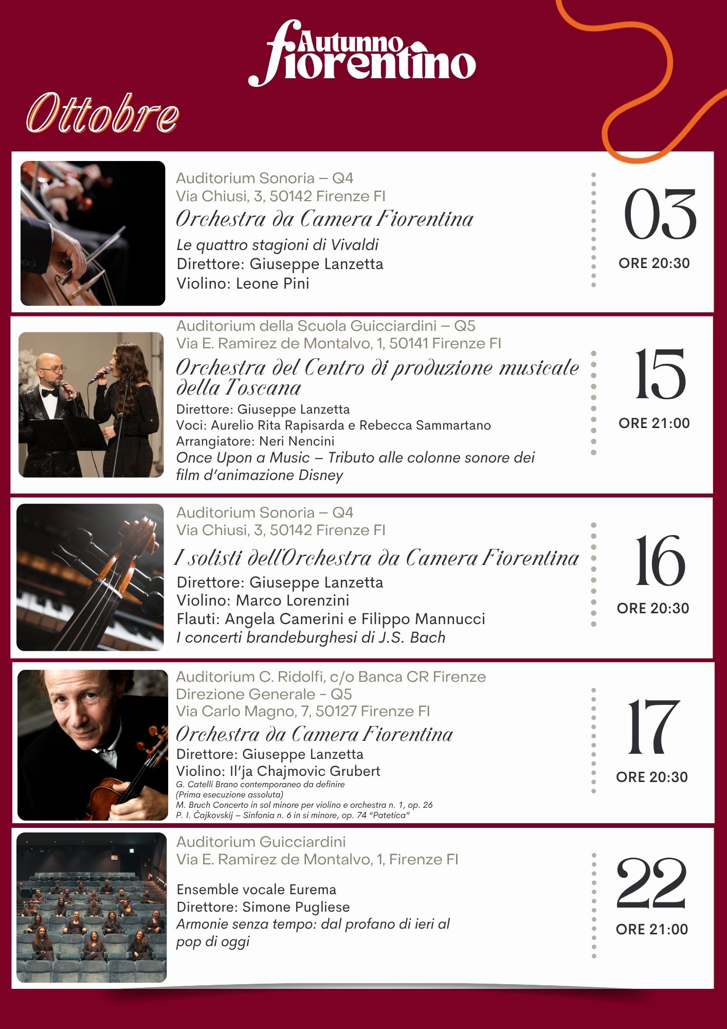 Dal 3 ottobre anche quest’anno l’Orchestra da Camera Fiorentina partecipa con entusiasmo al progetto Autunno Fiorentino del Comune di Firenze