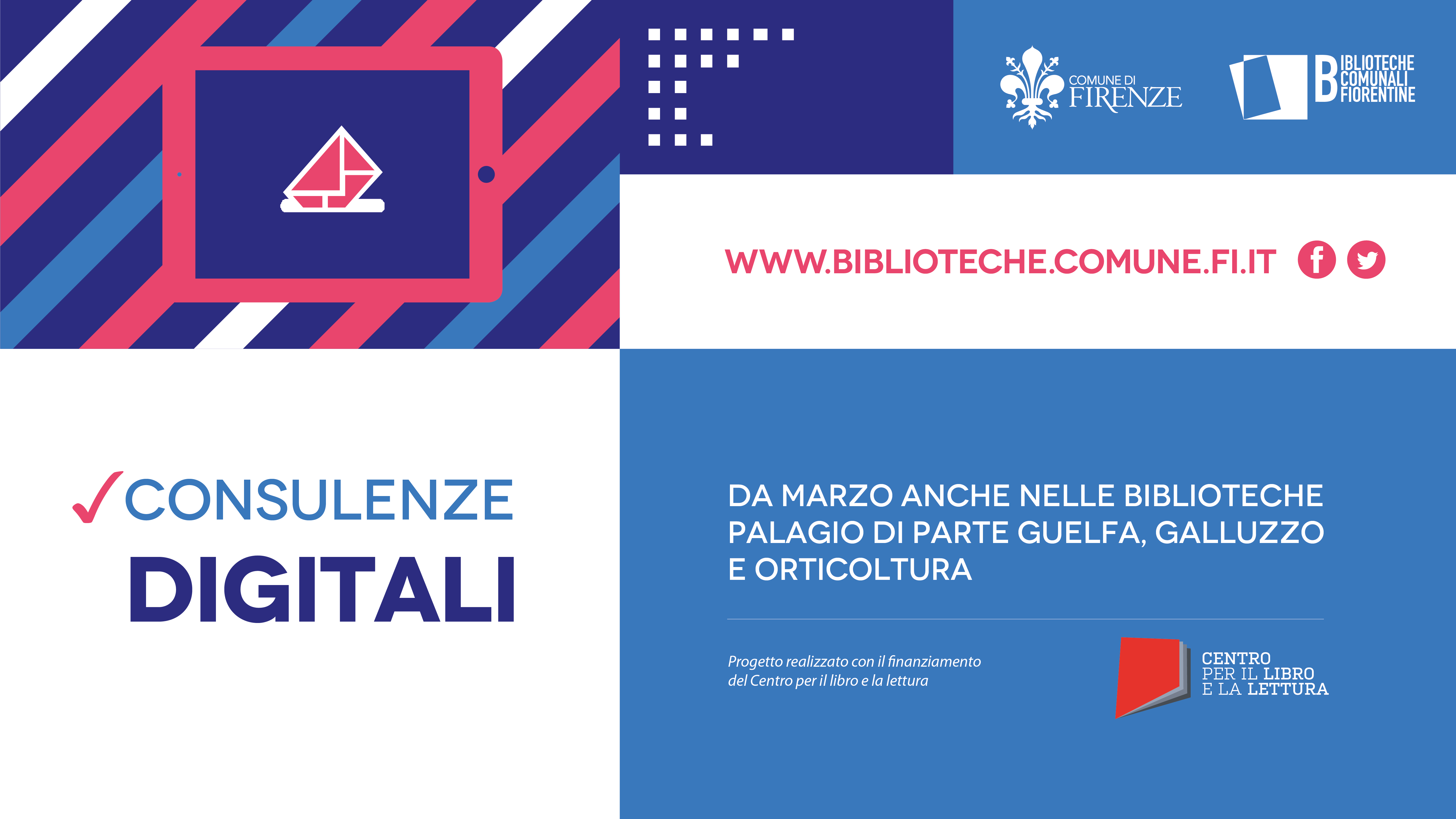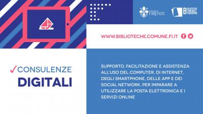 A partire dal 13 marzo 2023 il servizio di consulenza digitale si estende alle biblioteche: Orticoltura, Palagio di Parte Guelfa e Galluzzo grazie al progetto #avvicinareladistanza realizzato con il finanziamento del Centro per il libro e la lettura del Ministero della Cultura.
