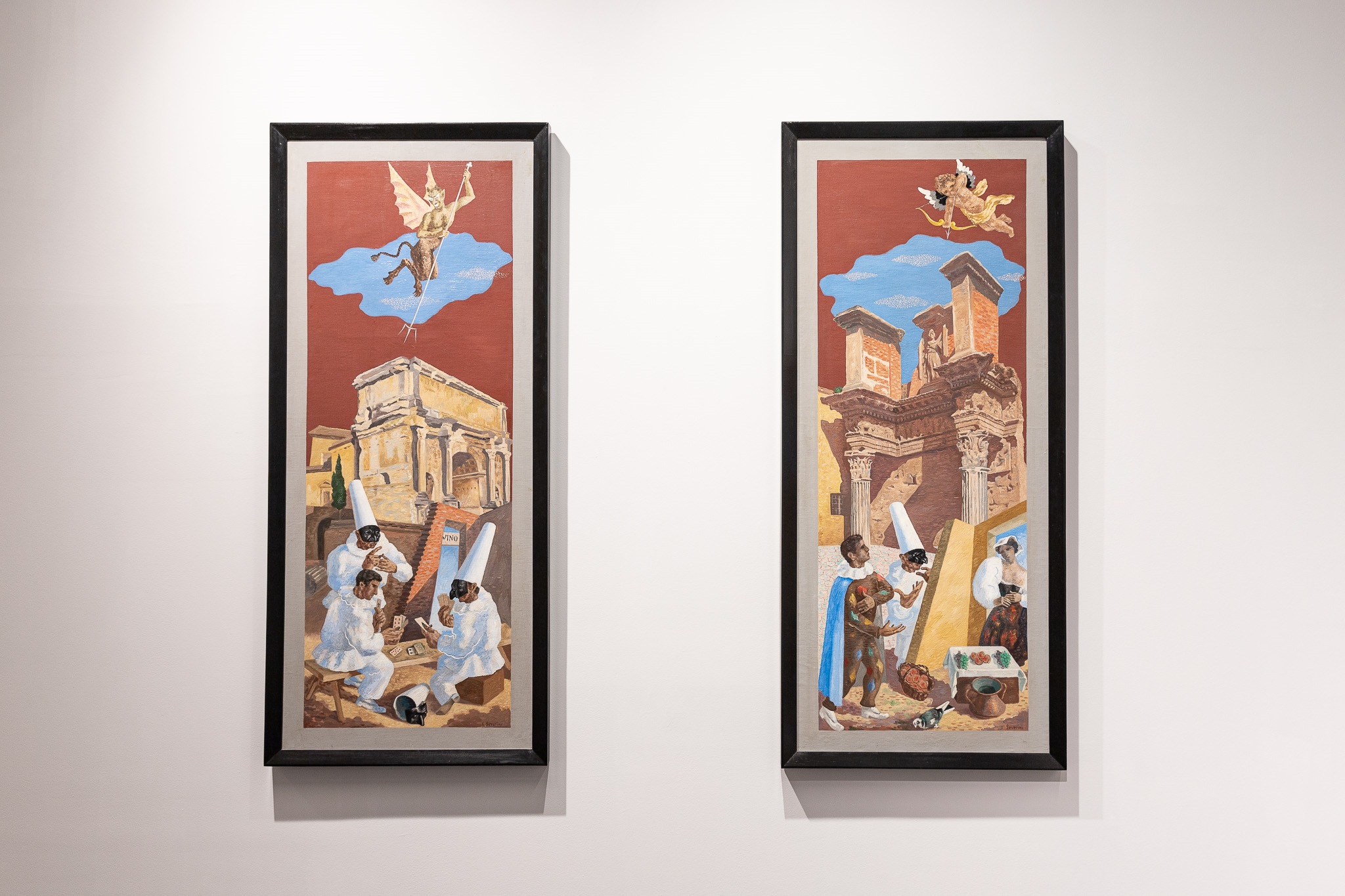 L’esposizione ospitata nelle sale al secondo piano del museo, riporta per la prima volta in Italia una selezione di gouaches relative alla Sala delle Maschere di Montegufoni, dove Severini recupera la tradizione dell’affresco. La mostra presenta inoltre quattro dei sei pannelli che decoravano la dimora Rosenberg, in cui paesaggi classici ricchi di riferimenti all’antico sono animati dalle maschere. Completano la mostra alcuni disegni preparatori relativi ad entrambe le decorazioni e diversi documenti che attestano le ricerche attorno a questi soggetti: materiali che rivelano con vivida concretezza lo studio della geometria e delle leggi della proporzione che ha guidato Severini nell’elaborazione delle forme e che nutrirà anche le pagine di Du Cubisme au classicisme (1921). La ricerca di una purezza stilistica incontra le vicende umane e sociali rappresentate dalle maschere, restituendo un mondo gioioso, ma al tempo stesso malinconico. Queste opere, successive alla stagione delle avanguardie, si inseriscono nella tendenza ad un nuovo classicismo, tipica del clima artistico e culturale tra le due guerre, che trova in Severini un attento anticipatore come testimoniato dalla celebre Maternità del 1916, con la quale si apre la mostra.