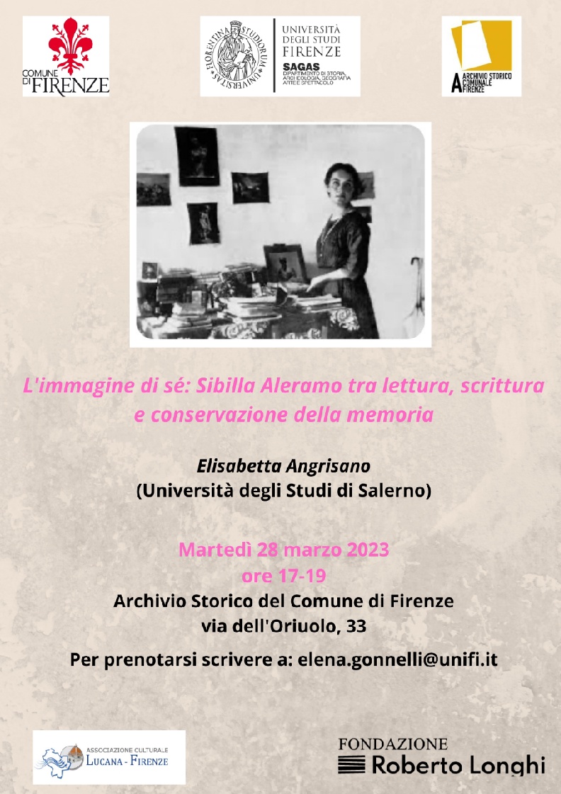 L'immagine di sè: Sibillia Aleramo, tra lettura, scrittura e conservazione della memoria, relatrice dell'incontro sarà Elisabetta Angrisano (Università degli Studi di Salerno).