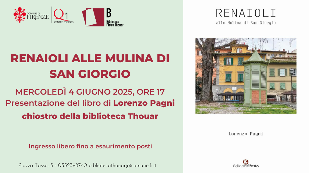 Mercoledì 4 giugno, alla Biblioteca Thouar, presentazione dell’ultimo libro di Lorenzo Pagni, “Renaioli alle Mulina di San Giorgio”