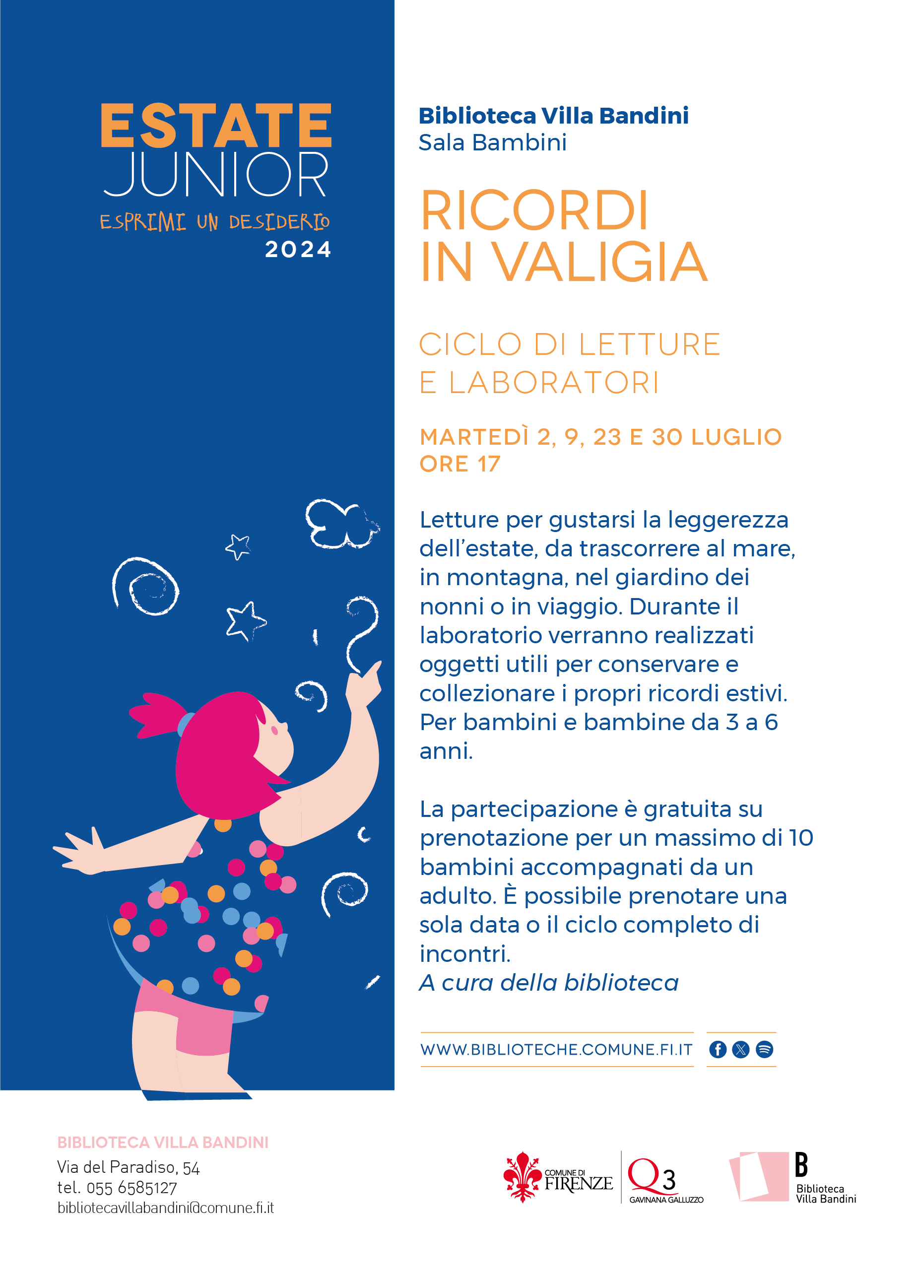 Per informazioni e prenotazioni telefonare al numero 055 6585127 oppure scrivere all’indirizzo bibliotecavillabandini@comune.fi.it