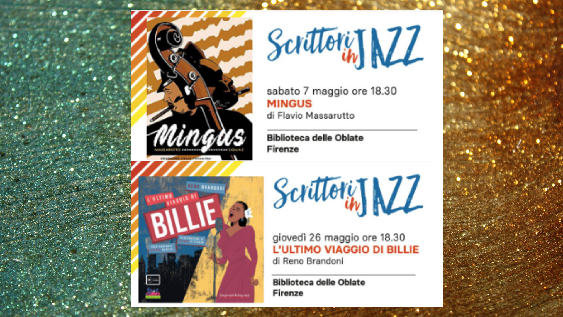 Il 7 e il 26 maggio alla Biblioteca delle Oblate la rassegna di incontri che unisce letteratura e musica jazz