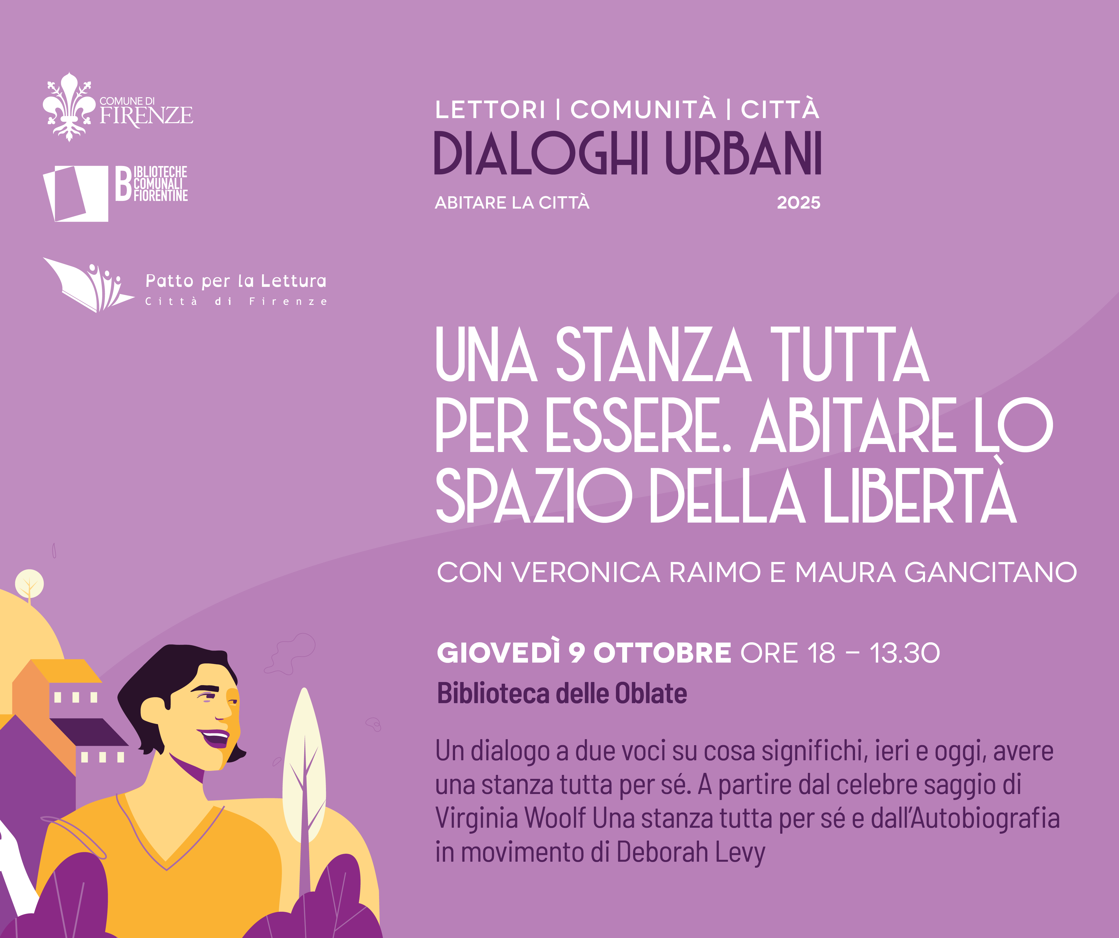 L'incontro fa parte della rassegna Dialoghi urbani curata dalle Biblioteche comunali fiorentine in collaborazione con la rete del Patto per la lettura, che unisce prospettive e voci diverse sul tema dello spazio urbano e della sua evoluzione.