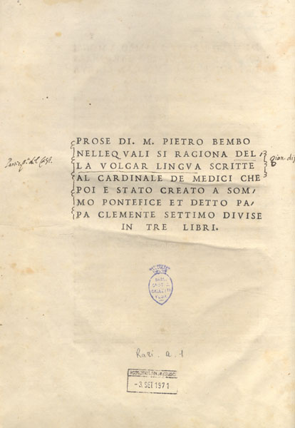 Nella mostra sono inoltre presentati alcuni oggetti straordinari, legati alla storia della lingua italiana. Tra questi sono particolarmente rilevanti un graffito pompeiano e alcune iscrizioni, in cui è riconoscibile il latino parlato, con alcuni fenomeni che lo avvicinano ai volgari italiani; un codice nel quale Boccaccio, a pochi decenni dalla morte di Dante, copia di propria mano la Commedia e quindici canzoni del Poeta; il manoscritto che gli Accademici della Crusca portano a Venezia per la stampa della prima edizione del Vocabolario degli Accademici della Crusca (1612); la sceneggiatura pasoliniana di Mamma Roma con correzioni autografe.