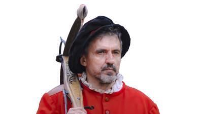 - Bandiera dei Balestrieri: in campo rosso scala bianca posta a banda montata su asta con puntale in ferro battuto riproducente un corvo