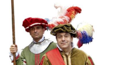 Chiudono il Corteo sfilando in terzine preceduti dal Capitano e dal Bandieraio che porta la bandiera della Mercatanzia.