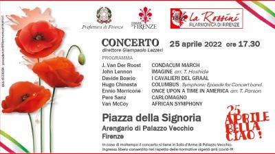 La Filarmonica Rossini suona di nuovo sull'Arengario di Palazzo Vecchio alle 17.30 per la festa della Liberazione