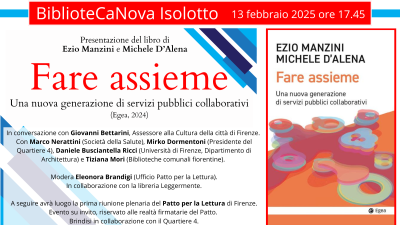 Giovedì 13 febbraio a BiblioteCaNova Isolotto prima riunione con gli aderenti al Patto per la lettura e presentazione di "Fare assieme. Una nuova generazione di servizi pubblici collaborativi"