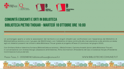 Martedì 18 ottobre alle 16 un incontro alla Biblioteca Thouar per confrontarsi con l'esperienza del BiblioOrto di BiblioteCaNova Isolotto e i BiblioOrtolani