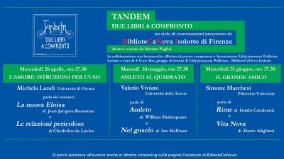 Quale sarà il filo conduttore che tiene legati due libri? Lo scopriremo insieme a BiblioteCaNova Isolotto a partire da mercoledì 26 aprile.