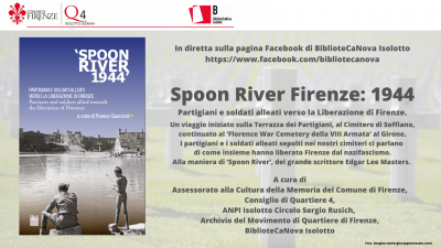 Giovedì 22 aprile alle ore 17.30 BiblioteCaNova Isolotto presenta il volume "Spoon River 1944. Partigiani e soldati alleati verso la Liberazione di Firenze" a cura di Franco Quercioli