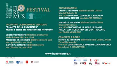 Dal 27 agosto al 12 settembre nelle Biblioteche Comunali Fiorentine concerti, incontri e laboratori per la 3° edizione del festival dedicato alla musica del Quattro-Cinquecento