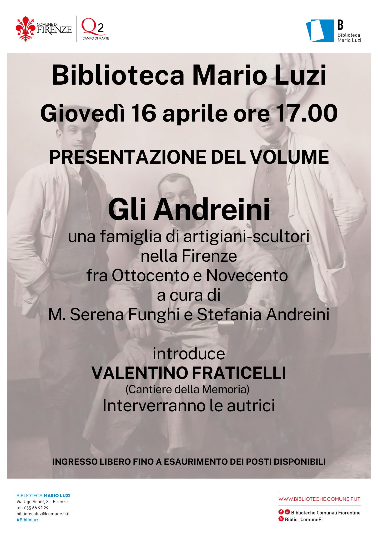 La storia inizia con Ferdinando Andreini, fondatore della tradizione artistica familiare. Successivamente il figlio Oreste crea un laboratorio di scultura nel quartiere fiorentino di Campo di Marte, che diventa un importante centro artistico. Il laboratorio rimane attivo fino agli anni ’50 e, soprattutto nei primi decenni del Novecento, riesce a ottenere grande notorietà non solo in Italia ma anche in Europa e in America.