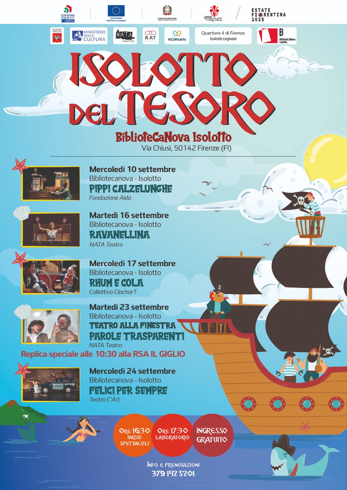 - Mercoledì 10 settembre, ore 16.30: Pippi Calzelunghe (Fondazione AIDA)