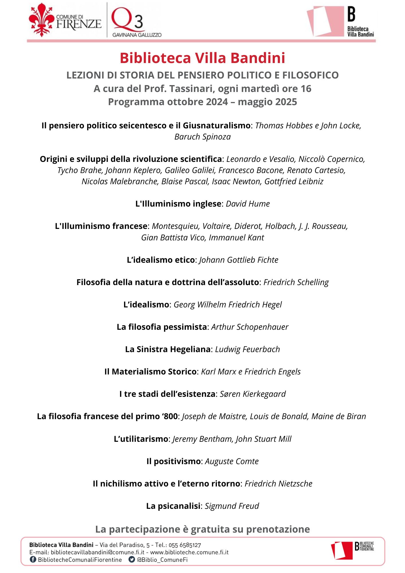 Un viaggio nella storia del pensiero politico e filosofico: dall'illuminismo alla psicoanalisi, passando attraverso il romanticismo, il positivismo francese e l'idealismo tedesco, a cura del Prof. Salvatore Tassinari