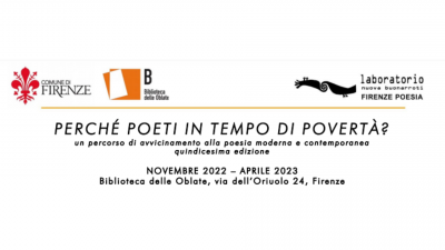Al via lunedì 14 novembre alla Biblioteca delle Oblate la 15° edizione di “Perché poeti in tempo di povertà”, un percorso di avvicinamento alla poesia moderna e contemporanea.