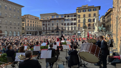 Il 25 aprile ore 17.30 sull’Arengario di Palazzo Vecchio torna a esibirsi La Filarmonica Rossini con il concerto “Bella Ciao! 25 Aprile 1945-2026”