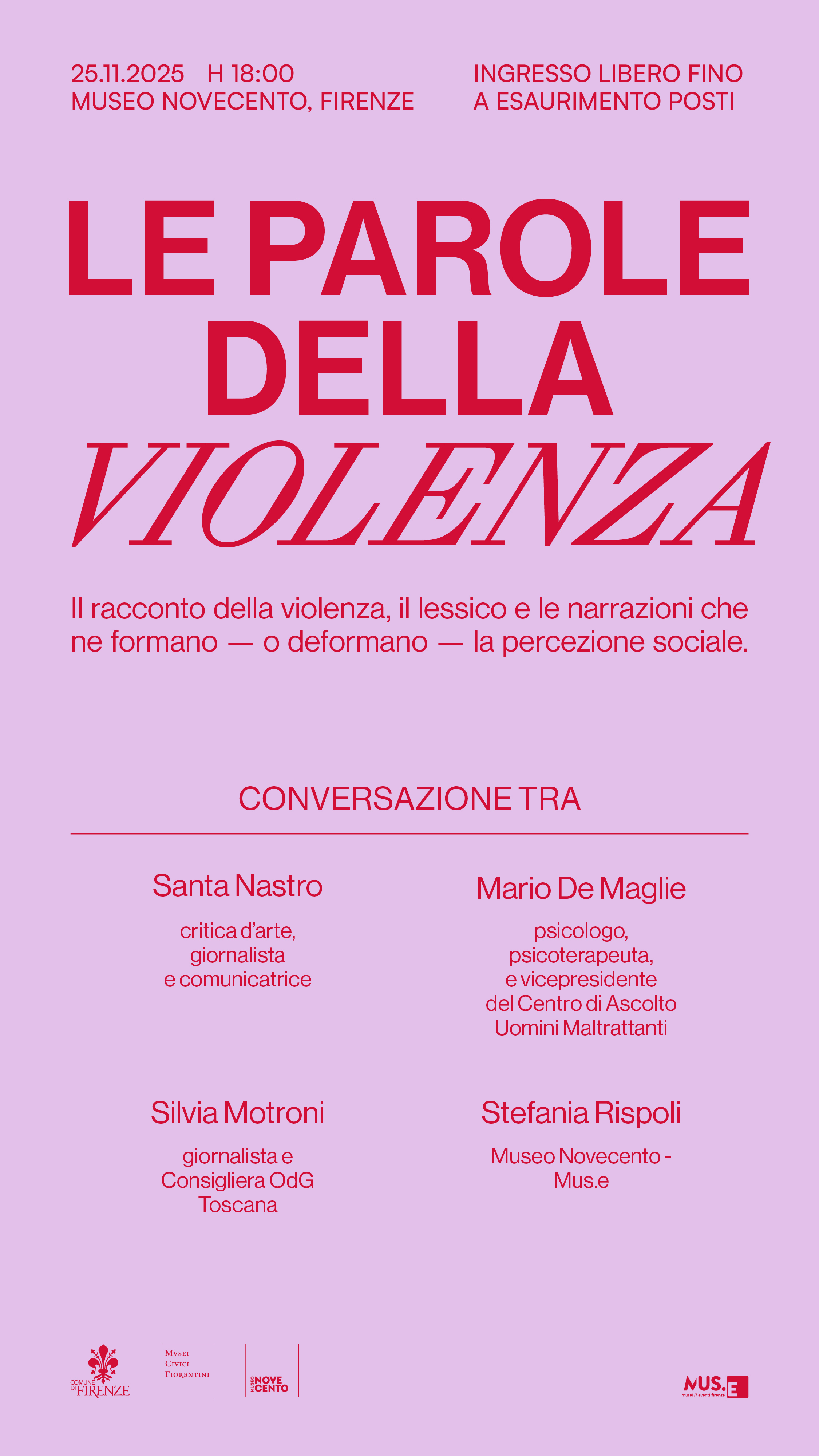 In occasione del 25 novembre, Giornata internazionale per l’eliminazione della violenza contro le donne, il Museo Novecento ospiterà un talk dedicato al linguaggio della violenza di genere. L’incontro nasce dalla consapevolezza che le parole non sono mai neutre: il modo in cui raccontiamo la violenza, il lessico che scegliamo e le narrazioni che costruiamo contribuiscono a formare — o a deformare — la percezione sociale del fenomeno.