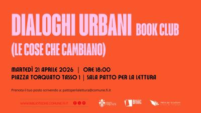 Martedì 21 aprile 2026 alle ore 18.00 prende il via Dialoghi urbani Book club, il percorso di lettura diffuso promosso dalle Biblioteche comunali fiorentine e dalla rete del Patto per la lettura